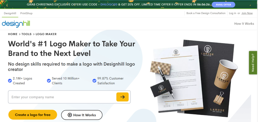 GraphicSprings是一个功能强大的可DIY品牌logo生成器,跨境电商独立站商家只需在首页输入品牌/企业名称和标语(可选),就会出现一个编辑器,访问logo库就可以对其中的任意部分进行个性定制,直到制作出自己满意的logo。它的特色功能是能够根据用户公司的业务细分logo类型。免费设计后需支付19.99美元来保存设计文件。它还能提供专业设计团队,可以为用户量身打造logo。
