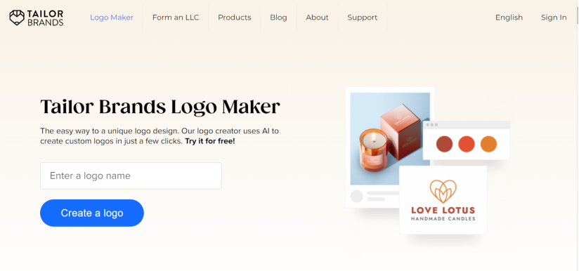 跨境电商独立站商家只需在Tailor Brands Logo Maker中输入logo名称(或任何企业名称相关的想法)和一行描述自己品牌的标语,再回答几个关于公司业务的问题,以及一些风格偏好的问题,就得到具有针对性的logo列表。