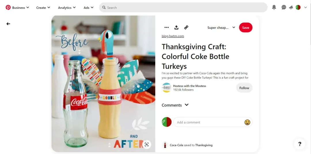 2022年,可口可乐在Pinterest上开了一个以感恩节活动为主题的板块,然后鼓励大家用可口可乐做饭,比如用可乐给火鸡上釉,或者用可口可乐的瓶子为原料来制作“感恩节火鸡”。在这次营销活动中体现出十足的创造力,让可口可乐这个大众习以为常的产品拥有了新的生命力,更能引起消费者的好奇心。