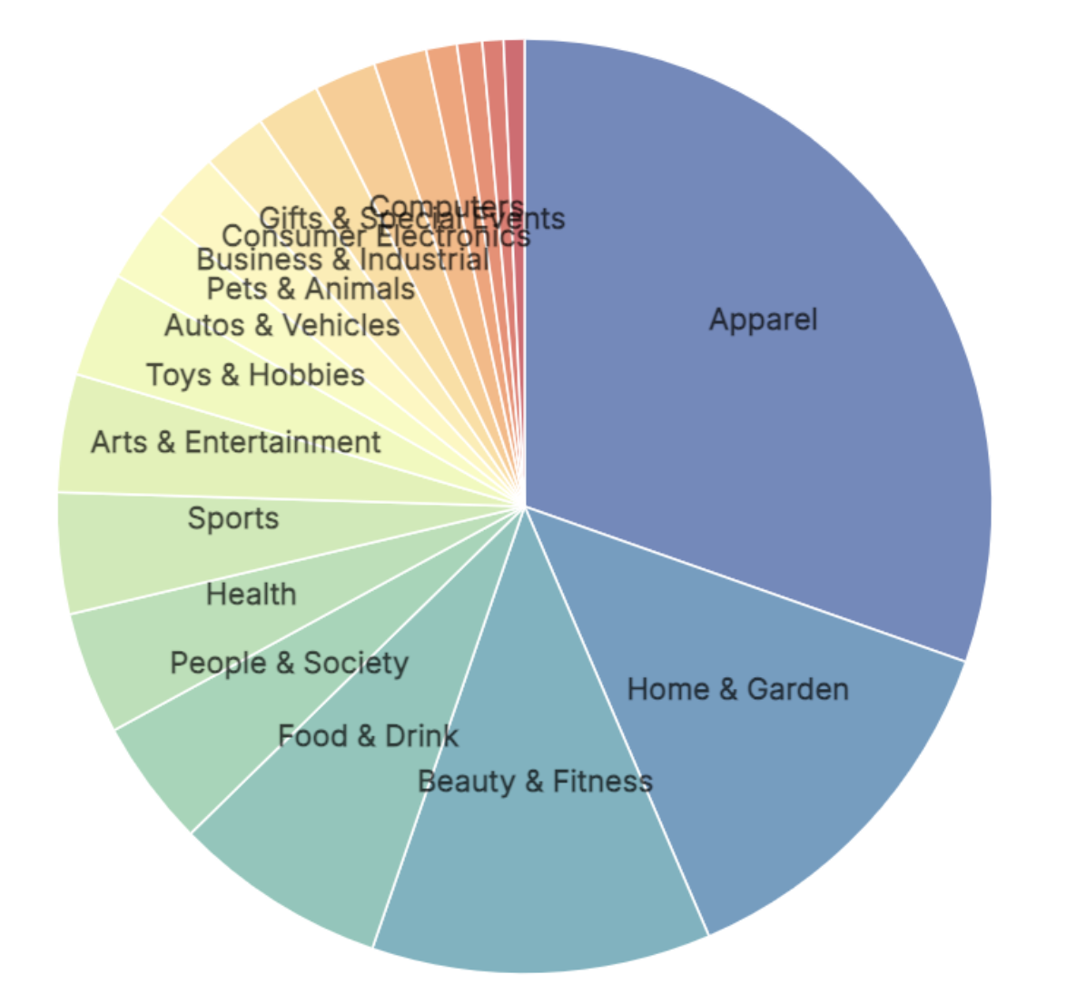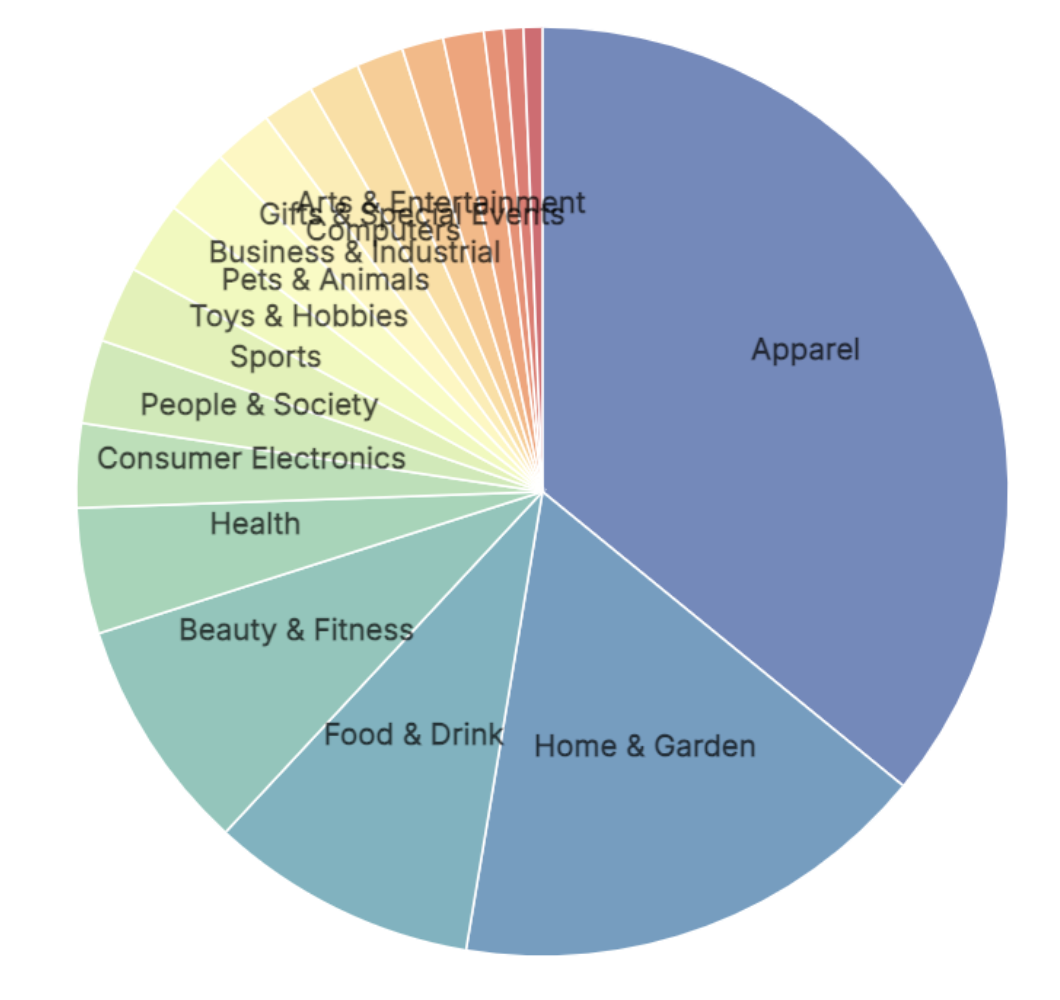 从storeleads的数据来看,SHOPLINE 和 Shopify 的商家主要都集中在服装饰品、家居园艺、食物饮品、美妆护肤这几个品类之中。
