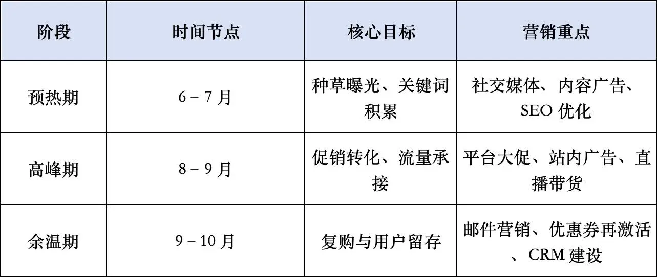 在北美,它通常从 7 月中旬开始,一直持续到 9 月开学前两周;在欧洲和亚洲部分国家,这一波返校消费会延续到 10 月甚至 11 月,伴随“返校+开学+秋季新品”三重需求叠加。