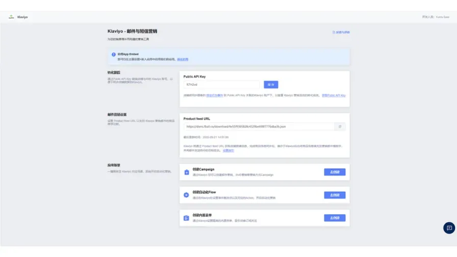 SHOPLINE 已经接入Klaviyo,店铺可以轻松连接Klaviyo 账户。只需在SHOPLINE应用中心安装Klaviyo插件后直接使用,具体常见问题解答可阅读SHOPLINE文章:Klaviyo邮件营销使用指引。