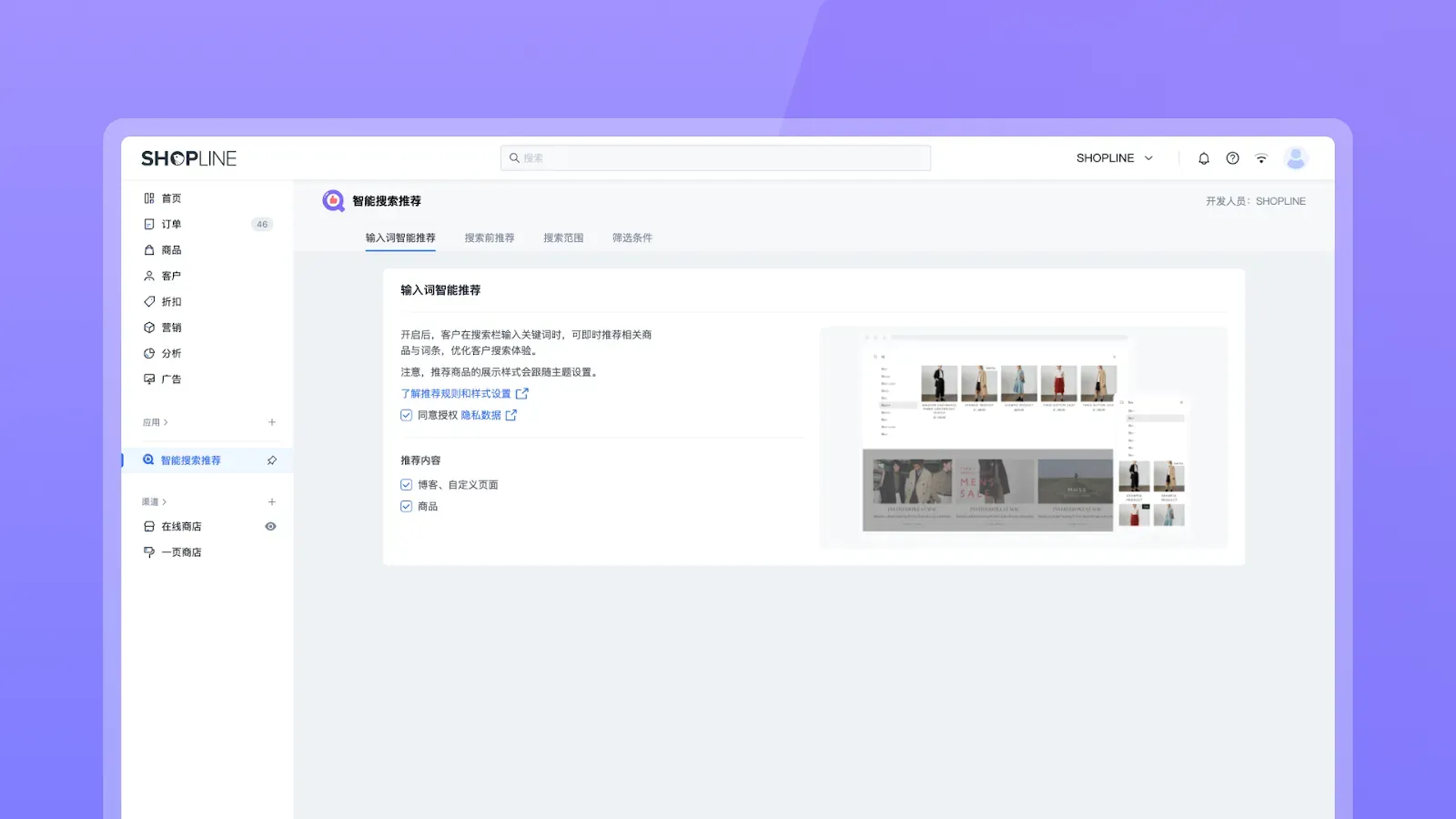 针对特定用户群体,利用长尾关键词提高广告相关性,降低竞争成本。SHOPLINE的智能推荐功能可在搜索场景中增强多类别内容相关性,帮助用户快速找到所需商品,提升店铺转化率。