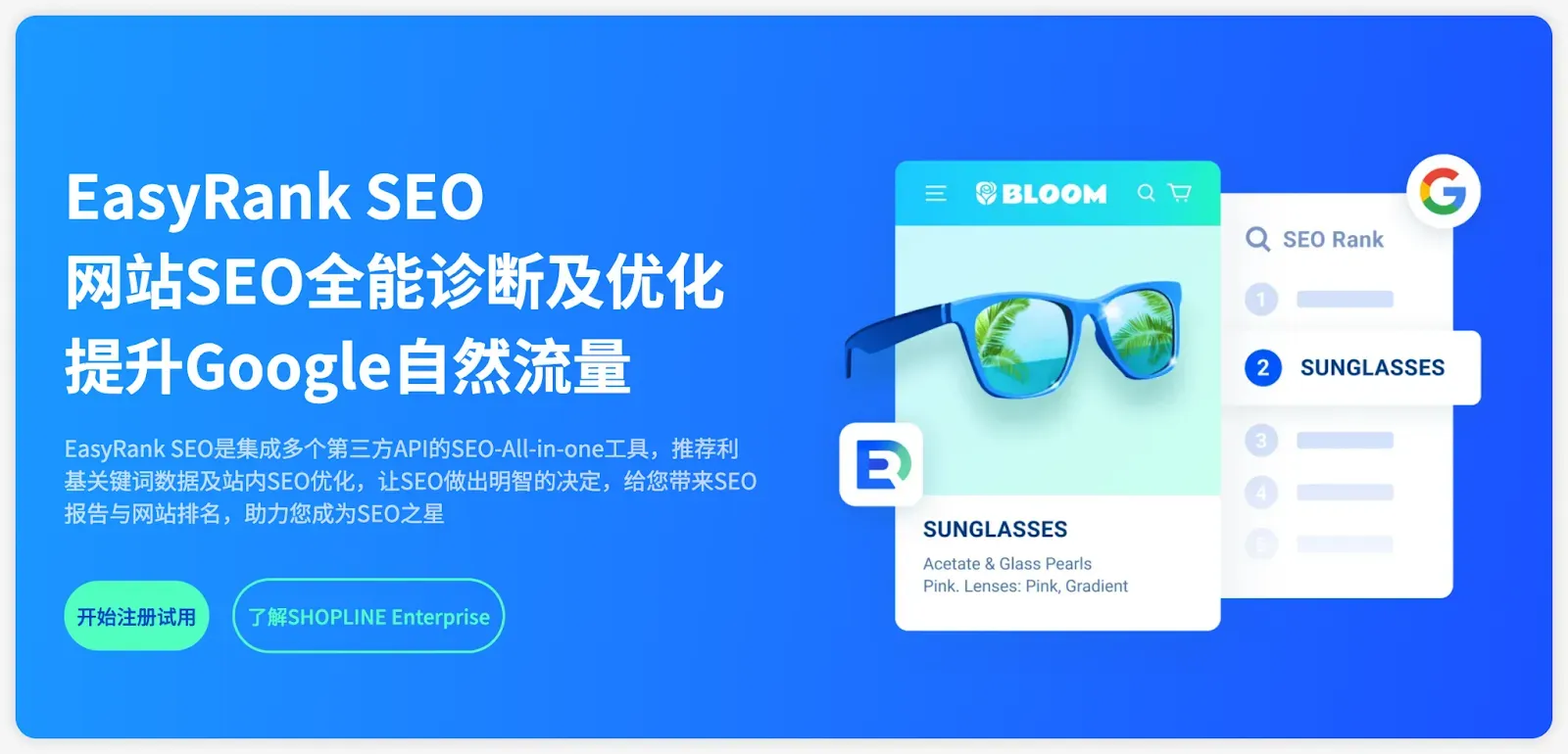 在搜索引擎的浩瀚信息中,精准的关键词策略可以将广告展示给最有可能转化的用户,提高点击率和转化率,同时降低广告成本。SHOPLINE的EasyRank SEO工具提供相关关键词SEO多指标分析,支持相关关键词列表数据导出,帮助商家分析关键词布局,结合搜索数据,理解用户真实需求,针对不同阶段用户定制广告内容。