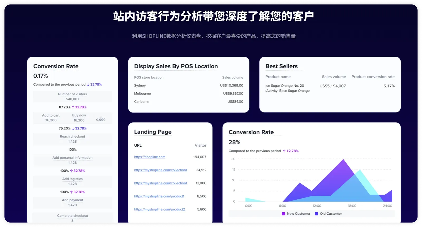 借助数据分析工具,全面追踪广告表现。通过SHOPLINE Analysis的业务数据分析仪表盘,监测曝光量、点击率、转化率等关键指标,实时跟踪销售和客户行为数据了解广告的实际表现,并为后续优化提供数据支持。