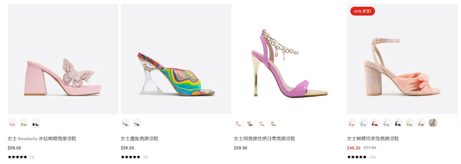 NEWBELLA以中高价位为主,多数产品价格在30~60美元之间,不仅提供女鞋,还拓展了男鞋、包包等商品,丰富了销售品类。