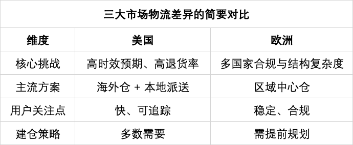 本文将围绕这三个核心市场,系统拆解它们在物流解决方案上的关键差异,并帮助跨境商家理解:物流不是选“最快”或“最便宜”,而是选“最符合市场预期与自身阶段”的方案。