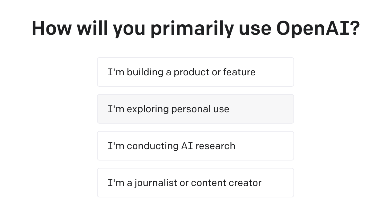 这里要选择您打算如何使用OpenAI,可以随意选择。