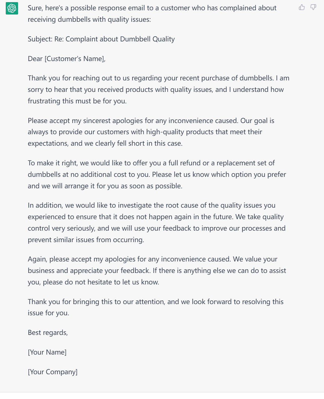 Write a response email to customer for their complaint about receiving dumbbells with quality issues.