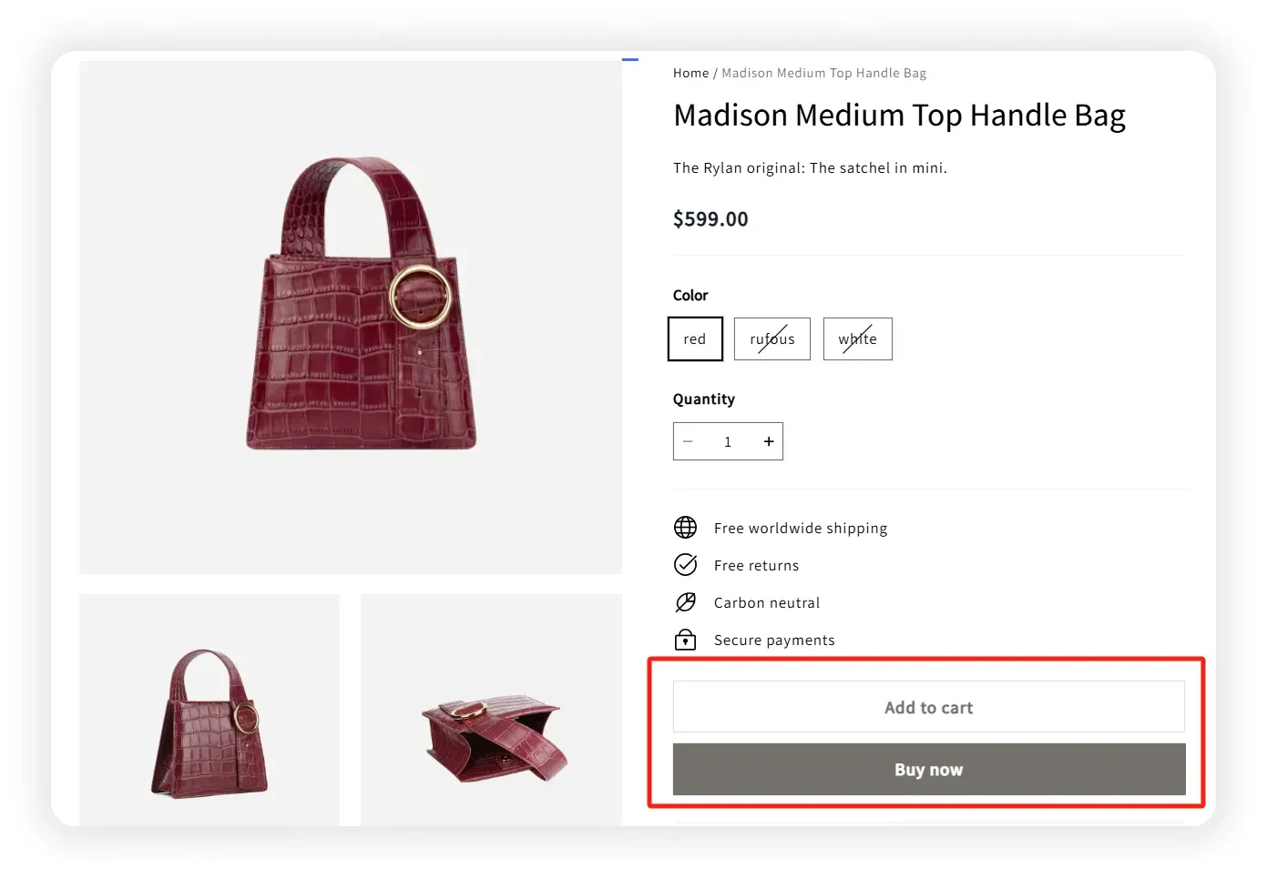 “添加到购物车”按钮不仅能简化用户的购物流程,还能提高转化率。当用户浏览到心仪的商品时,可以方便快捷地将商品添加到购物车中。“添加到购物车”按钮的设计应醒目且易于识别,通常位于商品图片的下方或描述信息的旁边,同时,按钮的样式和颜色应与页面整体风格相协调,为用户提供良好的购物体验。