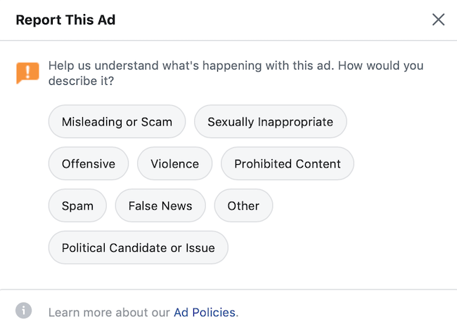 危险信号:未遵守Facebook的广告政策。