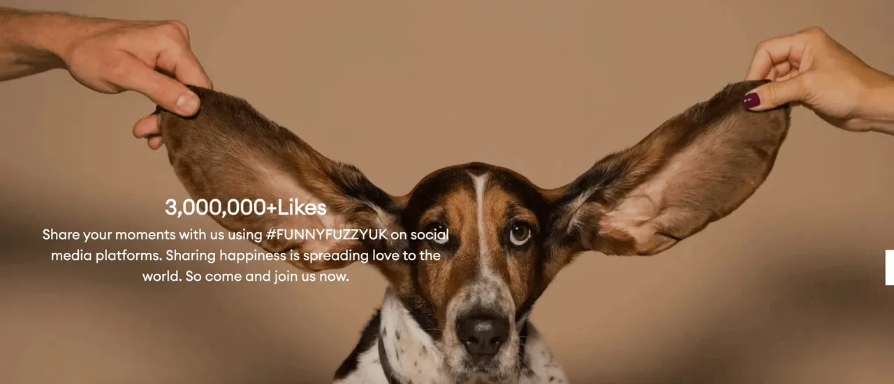 funnyfuzzy非常注重与用户的互动,他们发起“#MyFunnyFuzzyMoments”主题活动,鼓励用户分享宠物与产品的温情故事,你会发现在他们的网站上会有一个区块是专门留着和大家分享用户们和宠物的日常。通过将优秀的互动内容整合至官网和社媒传播,强化养宠人之间的情感共鸣;