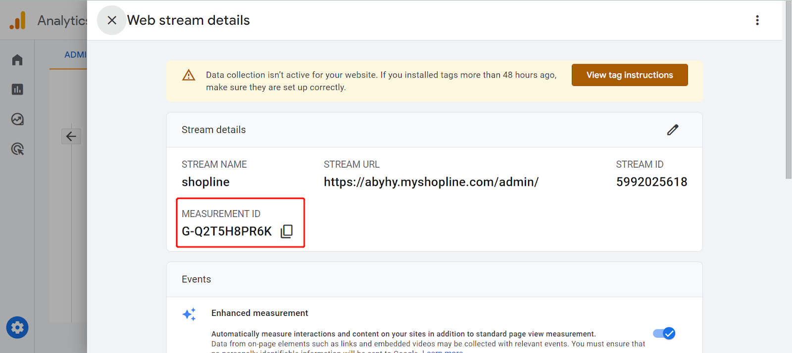 SHOPLINE后台已经和GA4 API相连,卖家可以从GA后台复制ID到SHOPLINE后台就行开始使用啦!