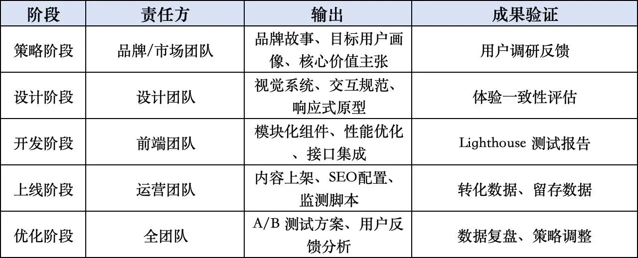 性能不是技术团队的单独任务,设计也不应只属于美学范畴。 一个高效的独立站团队,应当建立跨部门协同的闭环机制:
