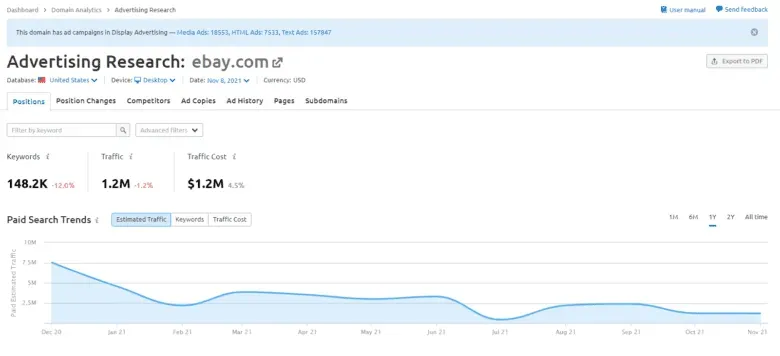 同样,该工具无法准确告诉您竞争对手的广告出价是多少,但您可以使用这些数据来揭示他们可能使用的趋势和策略。