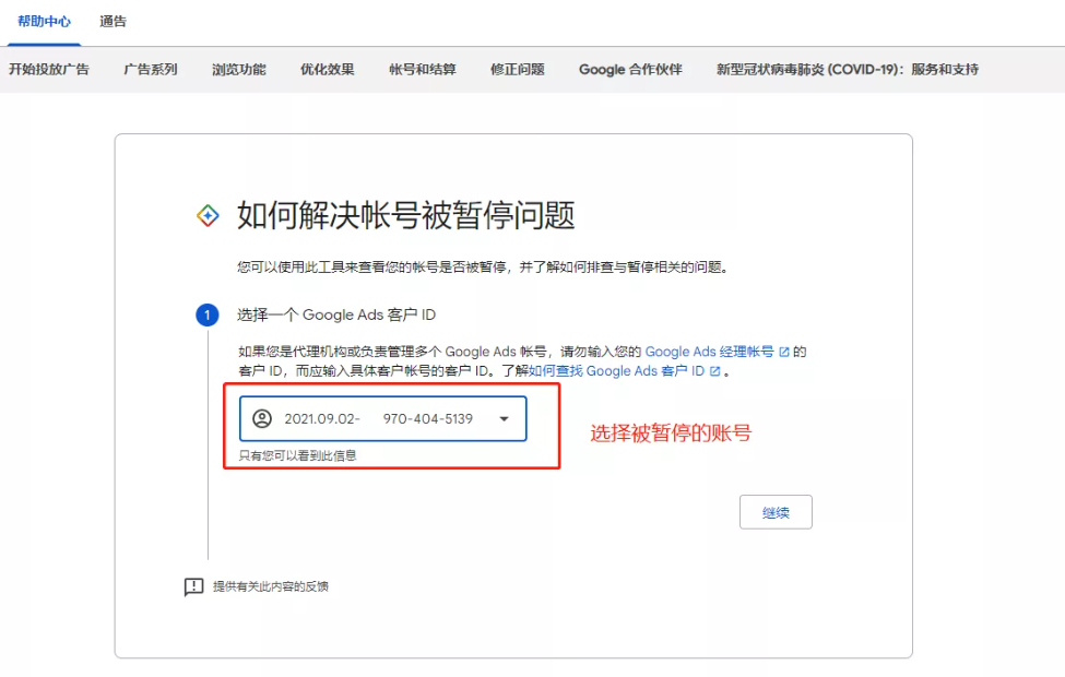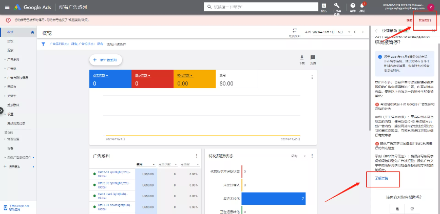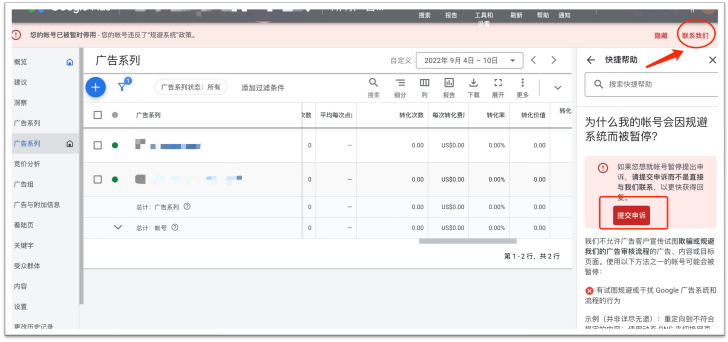 谷歌广告账户后台、谷歌广告政策相关页面的详情页都有申诉入口。