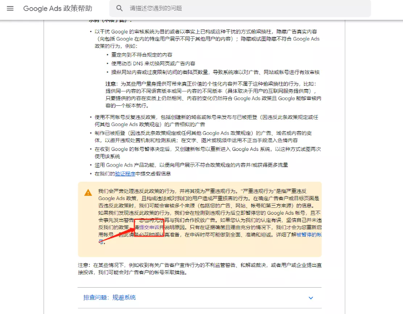 点击进入谷歌广告政策页面,找到文章详情的提交申诉页面,点击进入申诉页面。