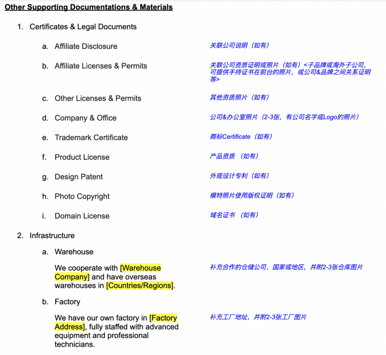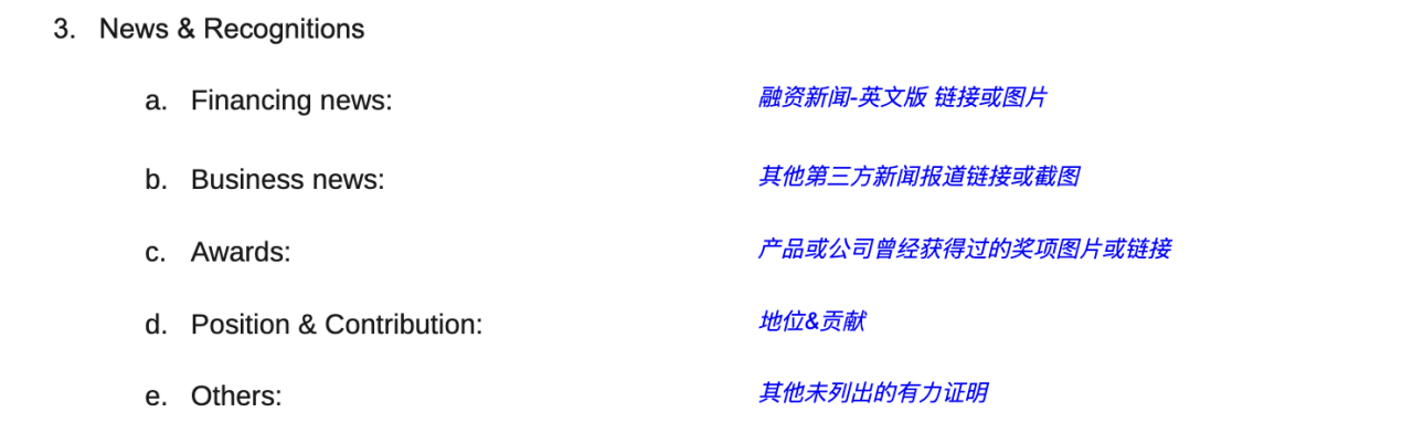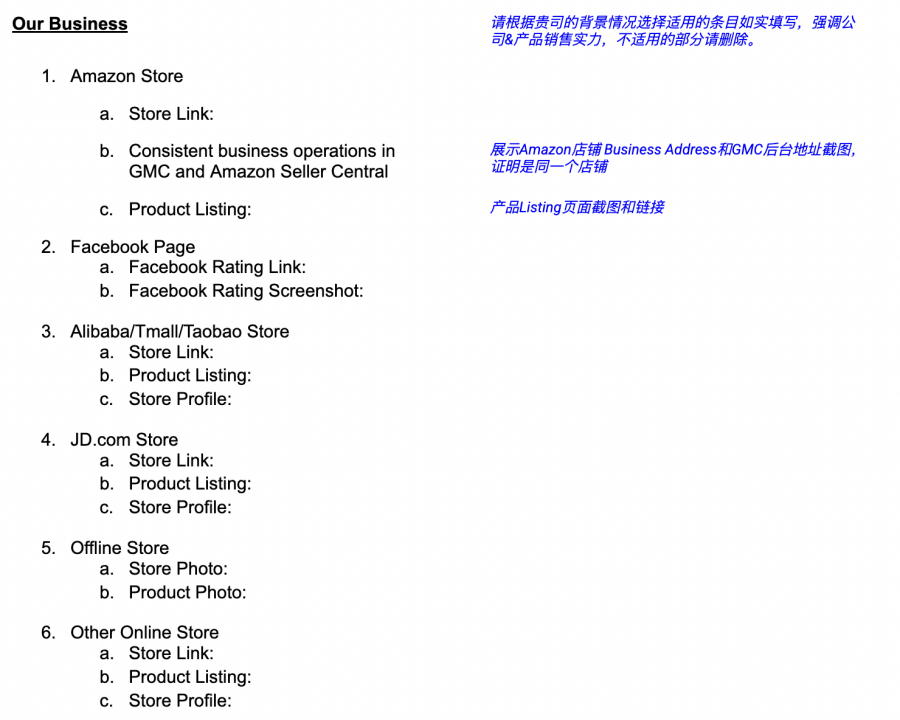 请根据贵司的背景情况选择适用的条目如实填写,强调公司&产品销售实力。 不适用的部分请删除
