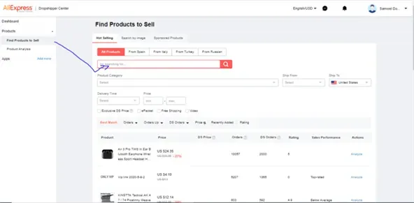 在后台点击“Find Products to Sell”,就可以看到那些热卖的产品,你还可以点击“Order”“Price”“DS Orders”等选项来筛选产品。