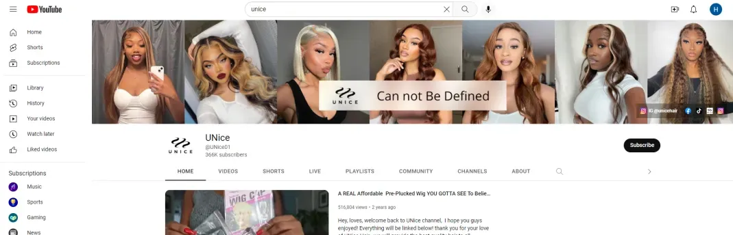 Unice品牌借助YouTube、Tiktok、Instagram等社交媒体。Youtube的流量来源占比更是达到了90%。精准捕捉了假发市场,以线上渠道和社交平台为基点,打造现象级新品牌,玩转海外市场。