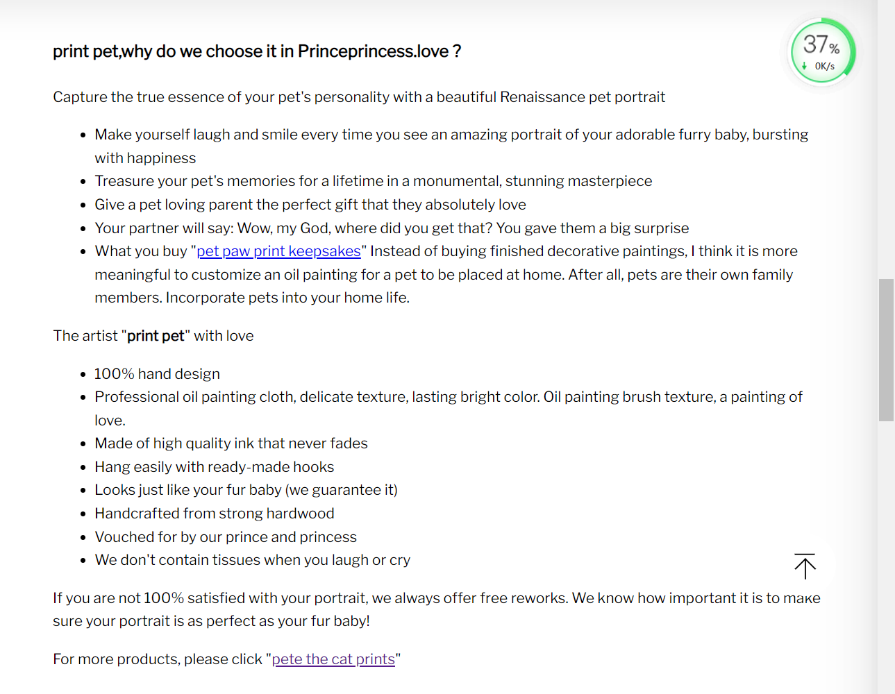 所以这一部分内容很重要,主要体现在两个方面,一个是重要的关键词要写在页面标题,URL,描述之中,一个是文本内容要和产品内容一致,相关性高,可读性高,同时要具有点击号召力。