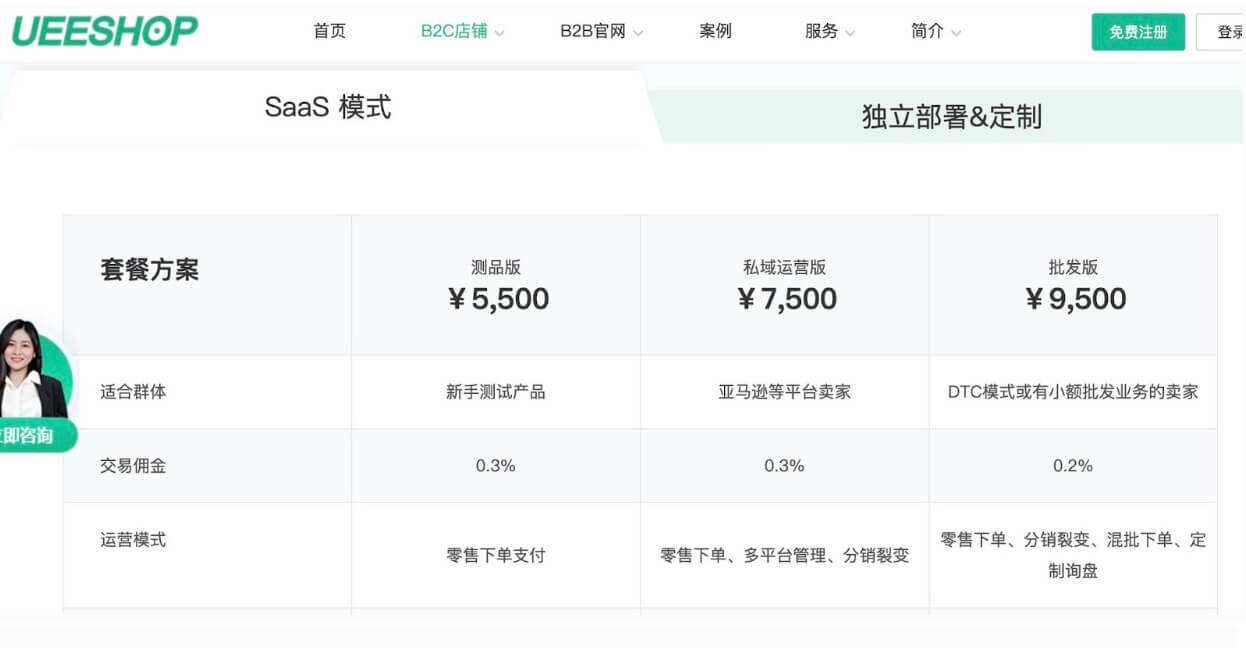 Ueeshop 是国内的 SaaS 跨境电商自建站平台,由联雅网络于2010年自主研发,为跨境电商零售卖家及外贸出口企业提供快速自主建站服务,截至2025年,Ueeshop已服务超过41,250家出海企业,年度交易额突破100亿美元,覆盖 B2C 、 B2B 等多种业务模式,其核心目标是帮助中小企业和品牌卖家快速建立符合海外消费者习惯的电商网站,同时通过SEO优化、社媒整合等功能提升流量转化率。