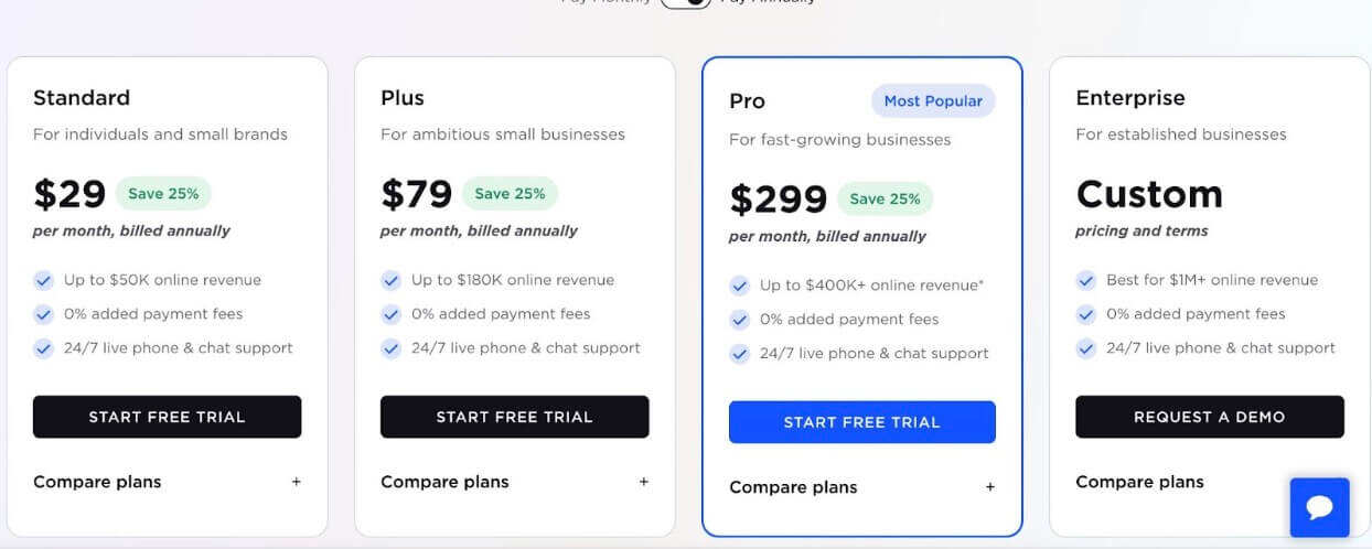 3. Advanced版($299/月 + 2.5%+$0.3/笔)