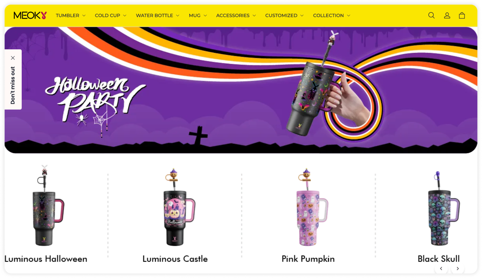 Meoky的独立站设计注重品牌形象与用户体验的结合。设计理念围绕简洁、直观的用户界面展开,关键设计元素包括灵活的导航栏、清晰的产品展示以及节日主题分类。这些设计不仅提升了品牌的视觉吸引力,也为消费者提供了更流畅的购物体验。