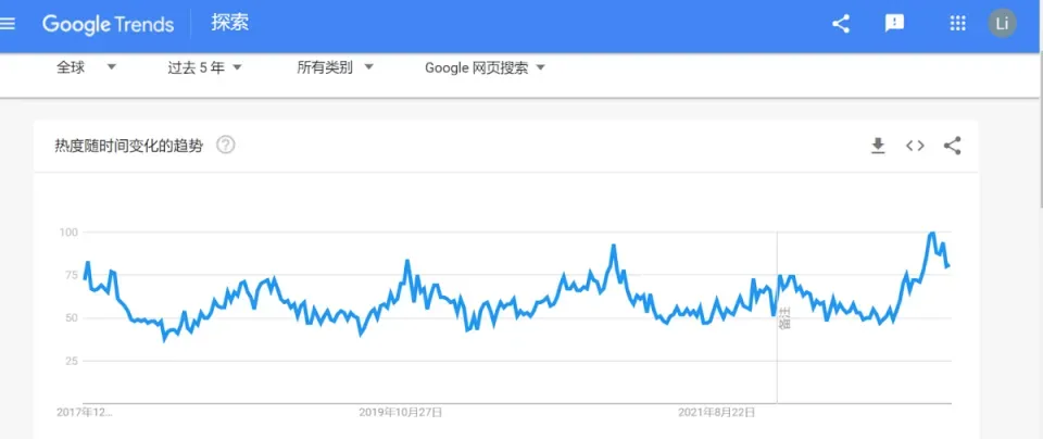 Google Trend提供了某个关键词在一定时间范围内的受欢迎程度和搜索趋势。