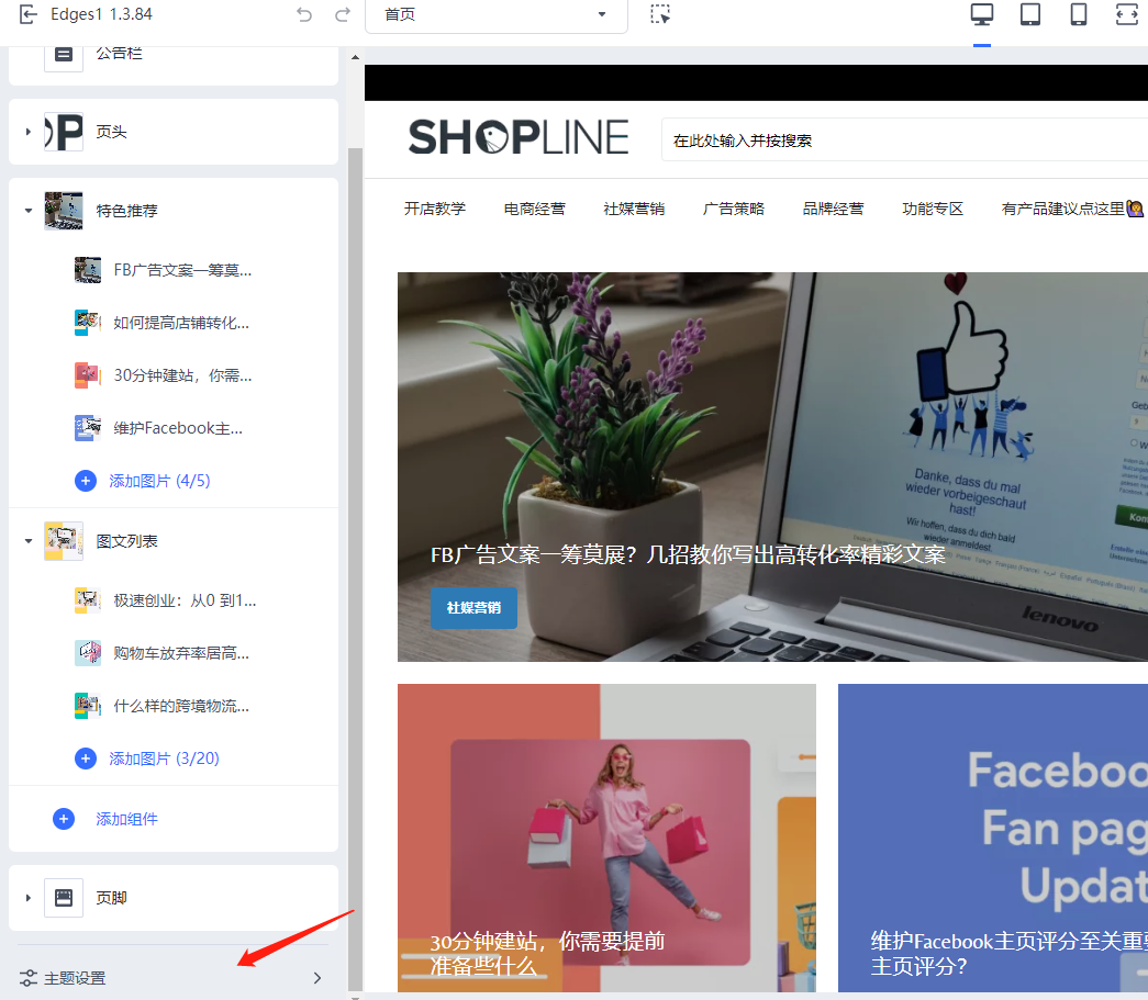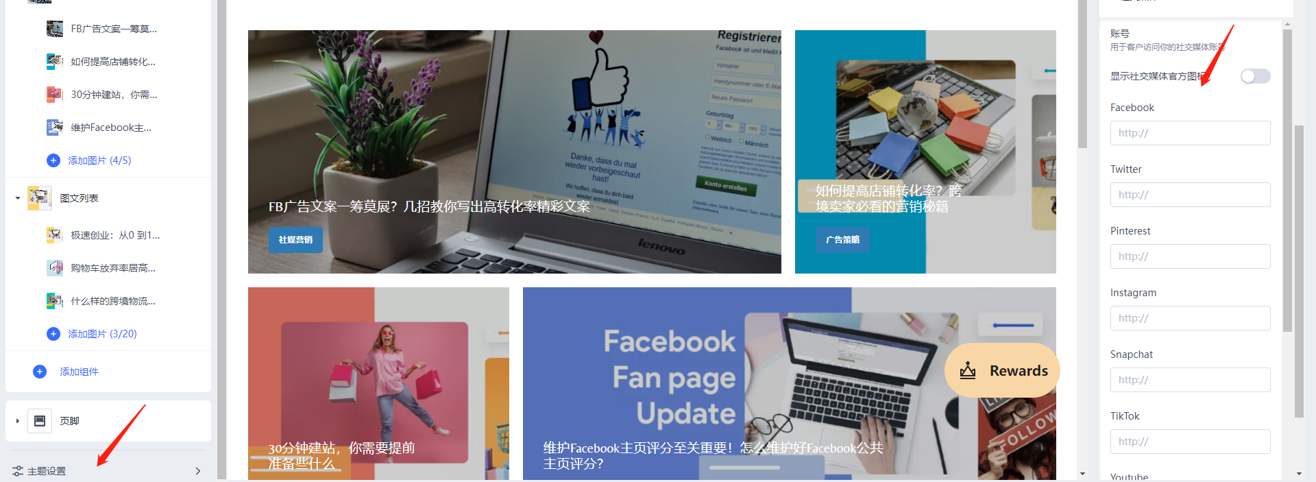 将你的FB商家主页链接,复制到社交媒体账号,放置后即可实时显示,同时您也可以选择点选“显示社交媒体官方图标”的展示样式。
