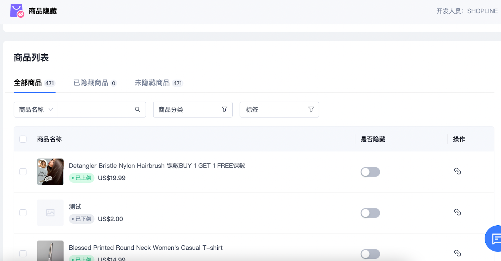 商品隐藏是Shopline官方推出的一款免费的隐藏商品的工具,通过使用商品隐藏功能,商品将不会显示于店铺前台,可通过商品链接让顾客私下购买。