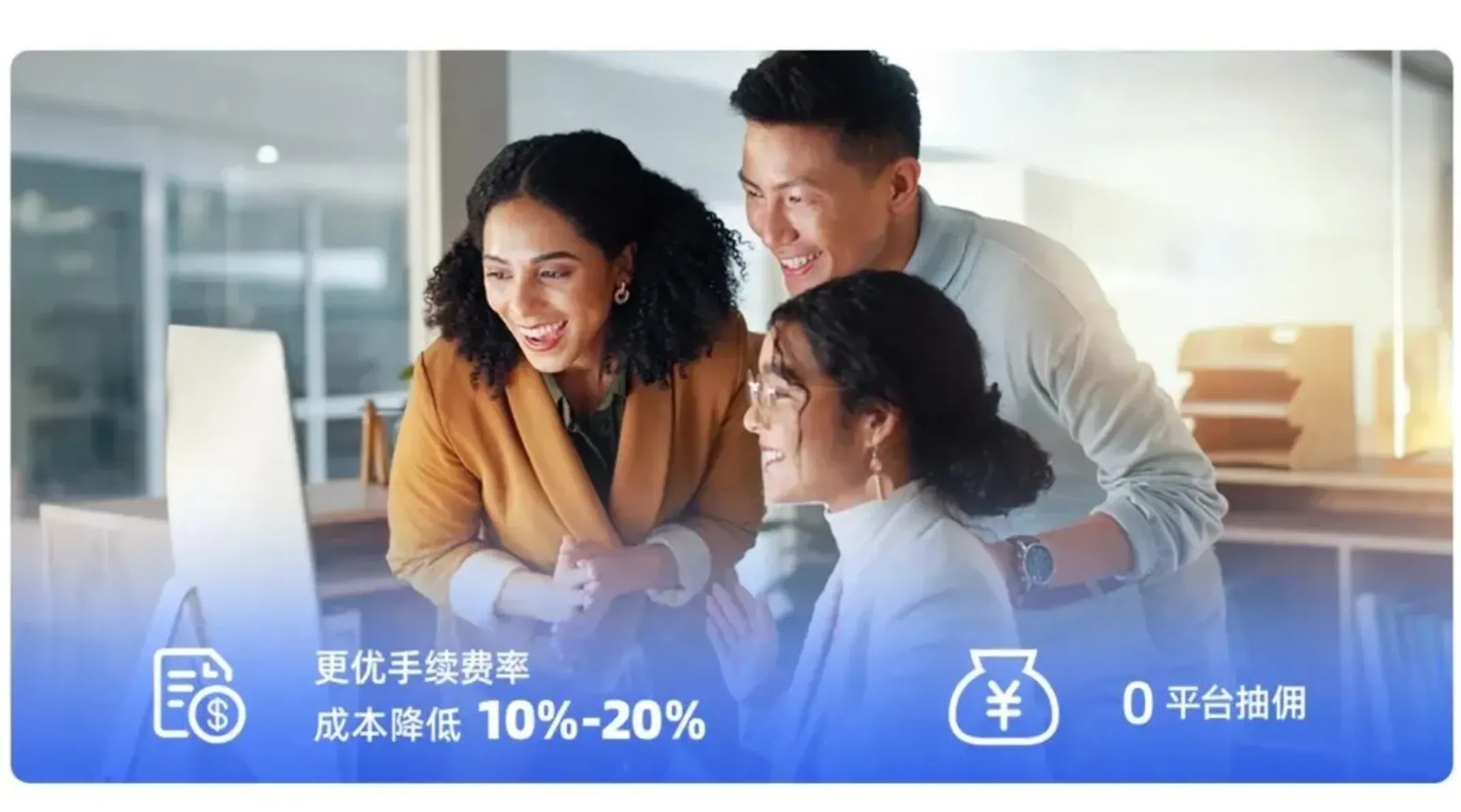 SHOPLINE 店铺商家开通后进行的每笔交易,均免收平台抽佣,实现成本效益最大化。