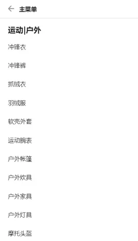 想要有最直观的感受,可以直接去亚马逊上看。比如在亚马逊上,“运动 | 户外”可以算是一个产业了,然后点击“运动 | 户外”可以看到下面又可以细分成各种大的相关品类(冲锋衣、冲锋裤、户外帐篷等)。详见下图: