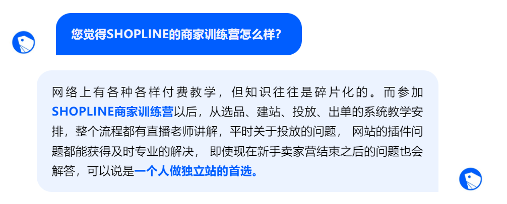 幸运的是,Dustin选择了通过SHOPLINE搭建店铺。在SHOPLINE,Dustin不仅可以参加商家训练营系统学习独立站投放实操,遇到问题还可以随时随地咨询各类专家寻求帮助。于是他将自己的苦恼告诉了训练营的班主任Peter。