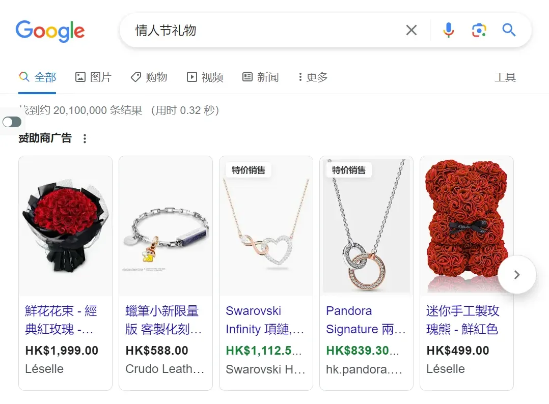 情人节是一个送礼的节日,当毫无头绪、不知道选什么礼品时,大家常会搜索这些关键词来确定自己的购物目标,因此你可以使用这些关键词来标记商品,使它们容易被找到。
