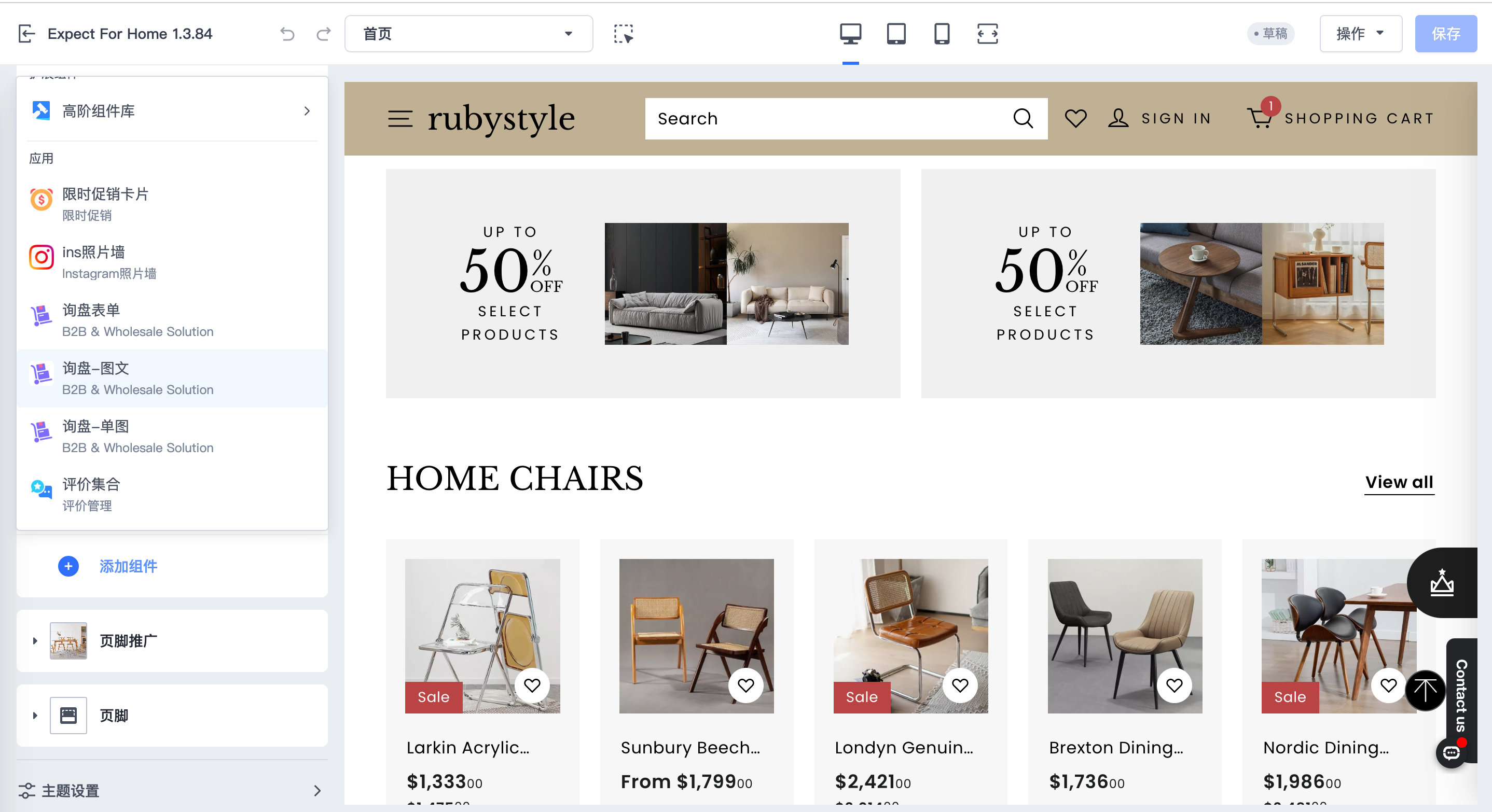 我们针对家居类的网站搭建需要提供差异化的背景纹理,支持特色的产品描述编辑,提供菜单图片和快速加购的按钮。我们希望构建一个可以随着时间的推移与您和您的业务一起不断优化适配的主题。