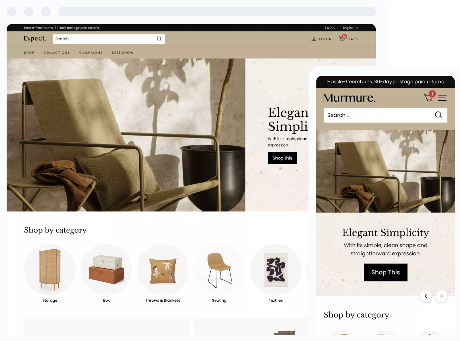 从第一次开设您的在线商店到增加销售额,Expect 应该继续恰到好处,就像一套舒适的家具。 可预览查看我们提供的Demo效果。