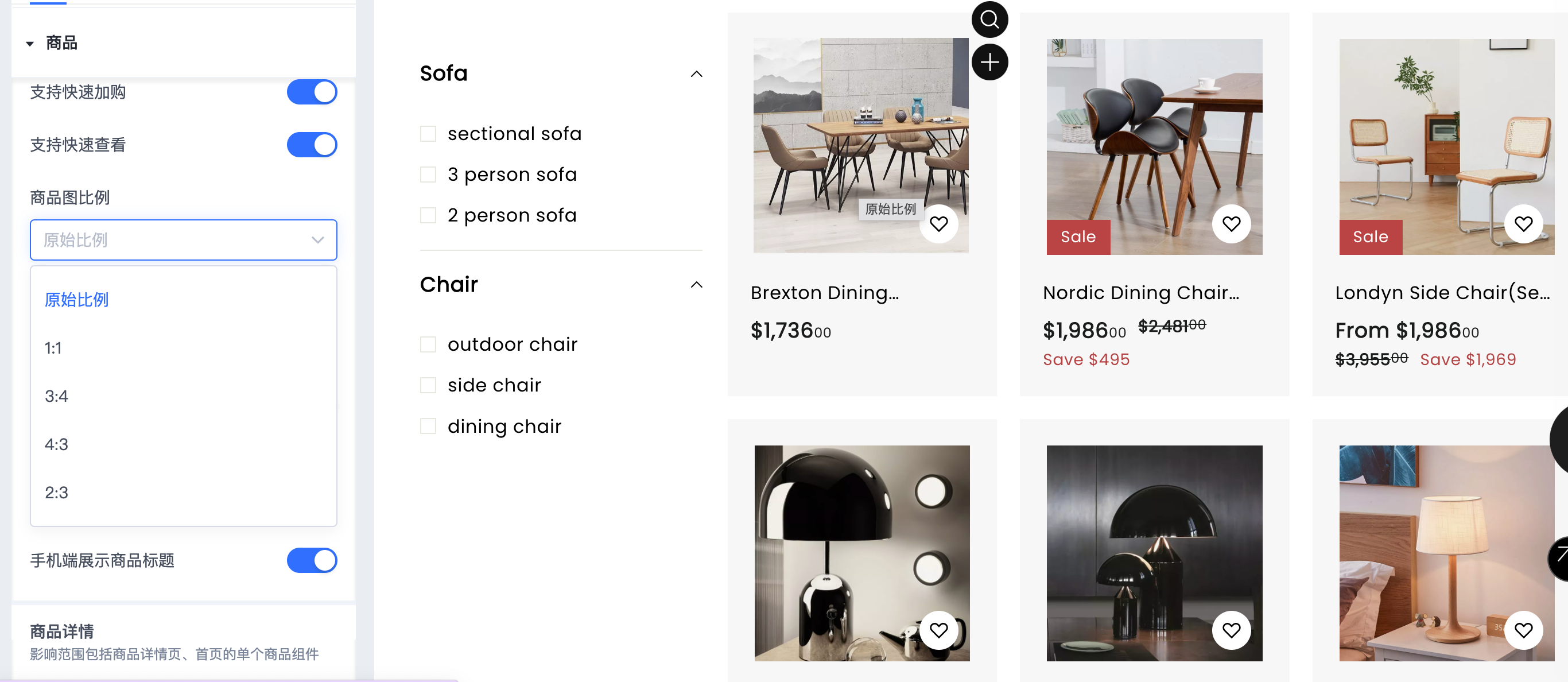 我们还知道,并非所有商家都可以设计经过一致编辑的产品图片,尤其是当您刚刚起步时。这就是为什么我们在商品页面支持统一调整图像比例并立即实现统一布局。