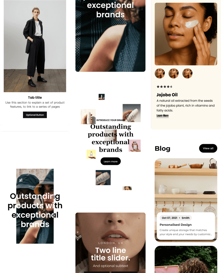 Section Gallery 提供丰富样式与高度可定制的组件,全面适配 OS3.0 主题的多层级设计,带来更优的网页性能与更出色的视觉呈现,轻松满足多样化的个性化页面装修需求