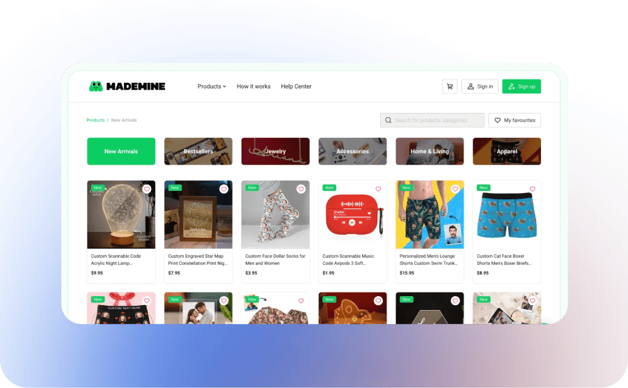 SHOPLINE 商家可无缝接入商品定制一件代发平台 MadeMine,从世界各地数千家优质供应商中选择最佳的定制产品进行销售