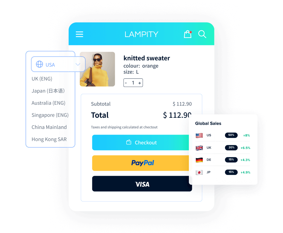 统一管理不同市场域名设置,支持多语言多货币、本地化定价,关税/进口税一览,无缝对接全球消费者