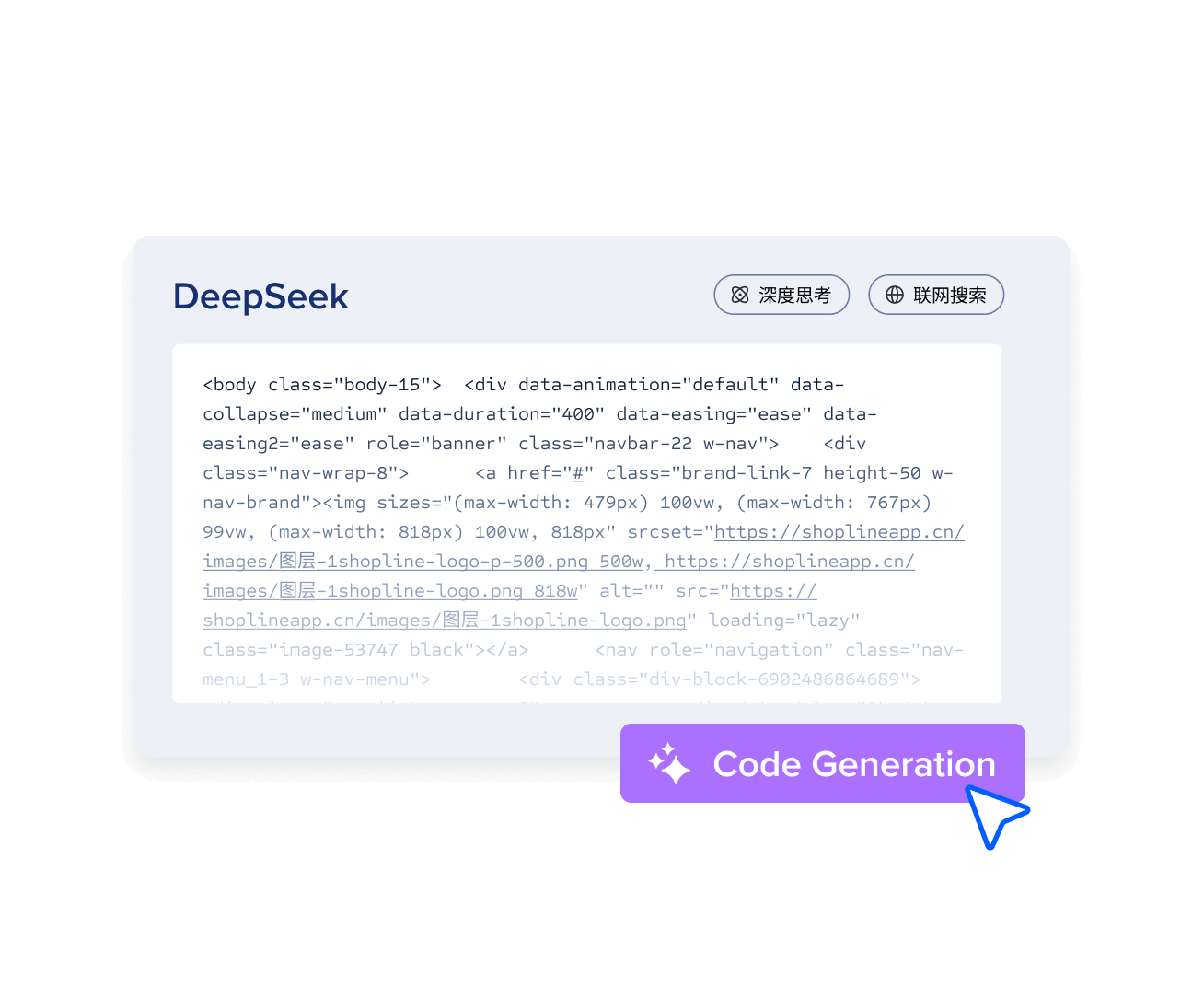 主题编辑器嵌入依托 DeepSeek 大模型的 AI 代码助手,完美理解您的设计需求,自动生成贴合主题的样式代码,实时预览、修改并应用到店铺中